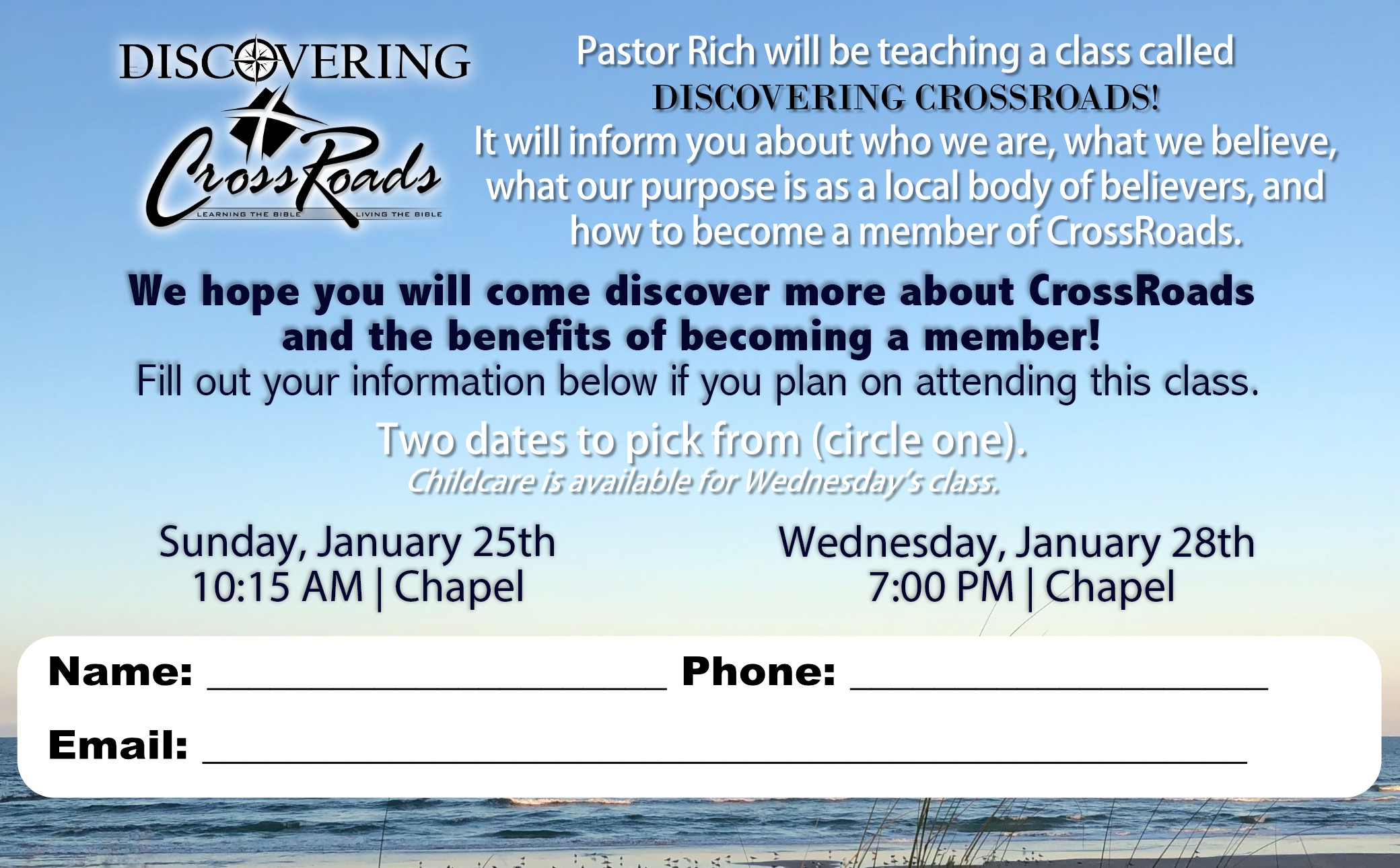 Email Pastor Cody at cody@crbible.com for more information or to sign up!